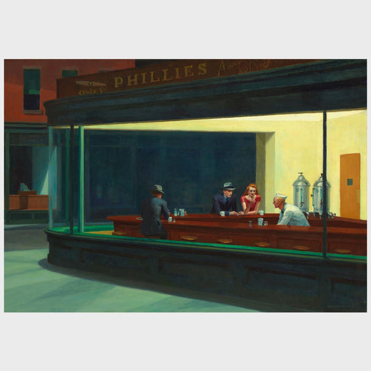 Nighthawks (1942) dipinto a olio di Edward Hopper