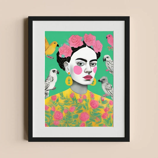 Frida Kahlo with Floral and Bird Motifs