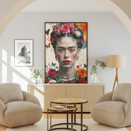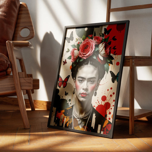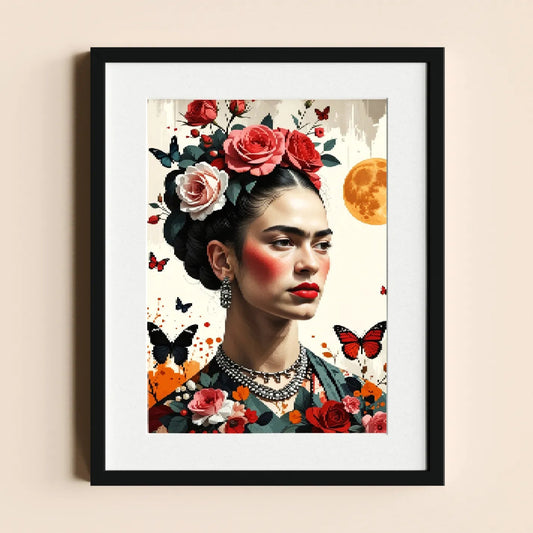 Frida Kahlo with Roses and Butterflies (Close-Up)
